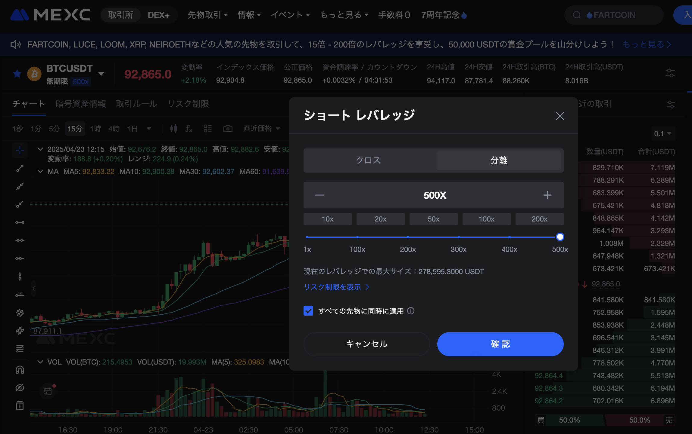 MEXC先物トレーダーの皆様に朗報です!BTCUSDTおよびETHUSDTの先物取引で最大500倍のレバレッジ、SOLUSDT、XRPUSDT、DOGEUSDT、ADAUSDTの各先物ペアでも最大250倍のレバレッジがご利用可能になりました!より少ない資金で、より大きな市場チャンスを狙える環境が整いました。