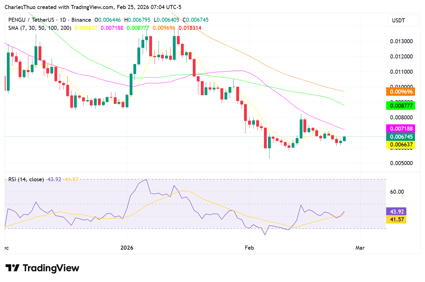 If PENGU can break and hold above this level, it could push toward $0.0075–$0.0079 in the short term.