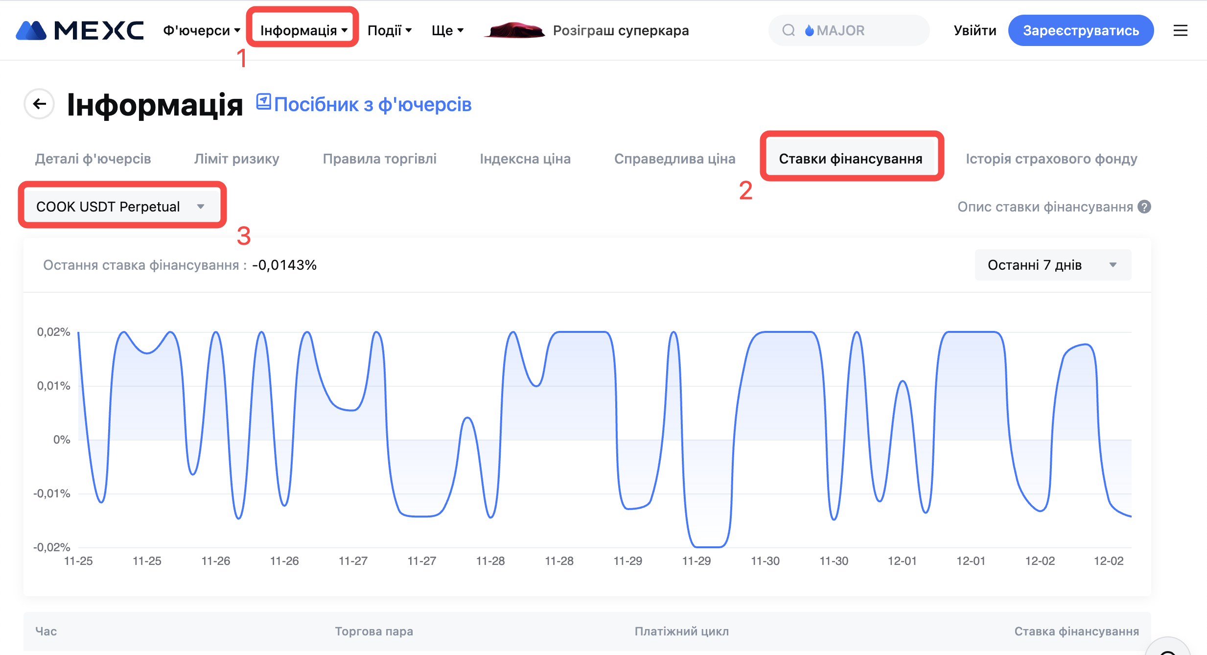 Коригування частоти розрахунків за ставкою фінансування ф'ючерсів COOK USDT-M на MEXC (2 грудня)