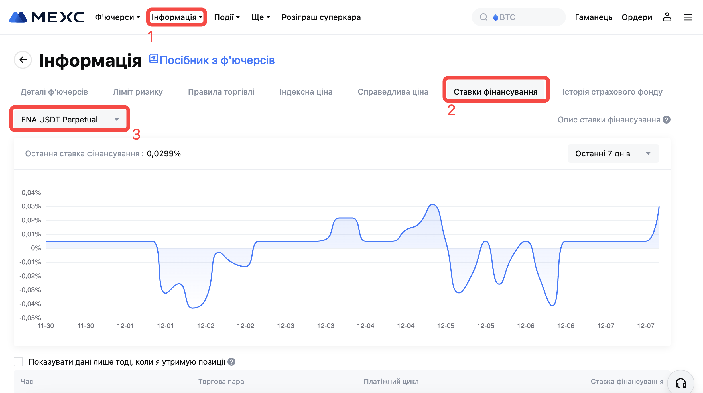 Час (за Києвом) | Макс. ставка фінансування ф'ючерсів ENA USDT |