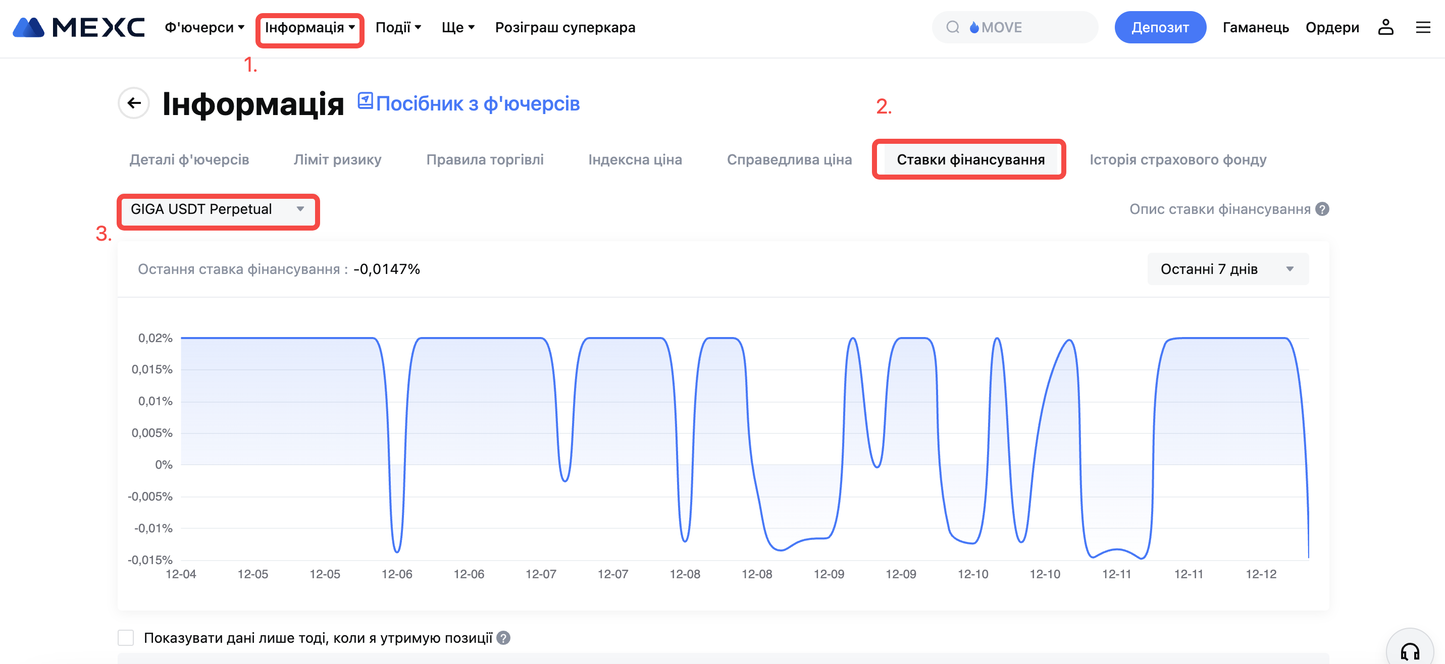 Остання інформація про ставки фінансування наведена у вкладці Інформація - Ставки фінасування