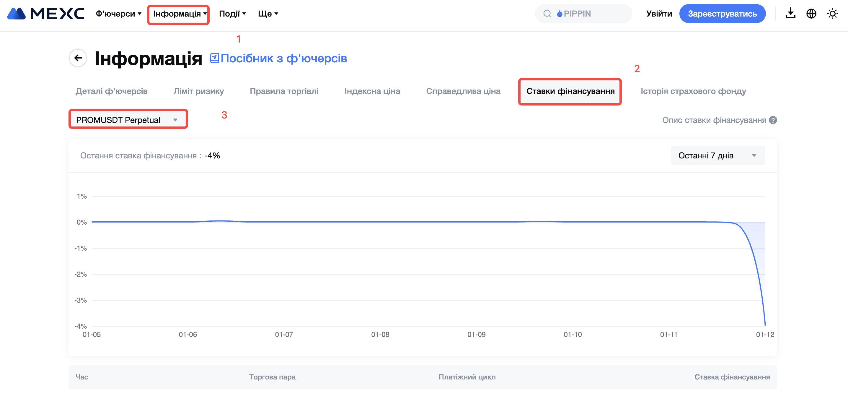 Вебсайт: Інформація >> Історія ставок фінансування.
