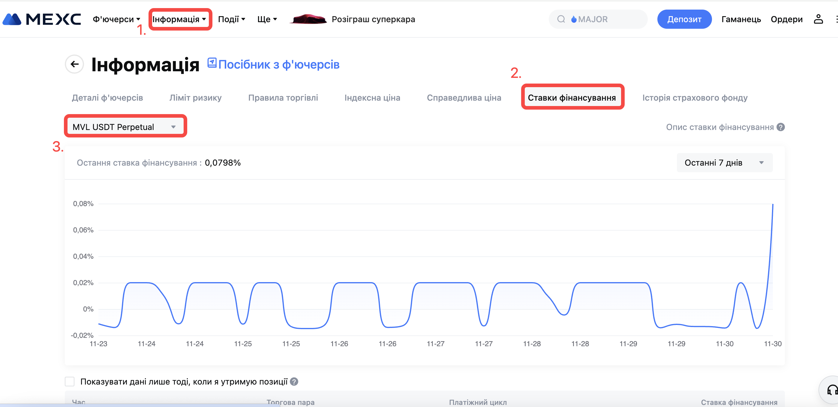 Щоб отримати інформацію про останні ставки фінансування, скористайтеся наведеною нижче інструкцією: