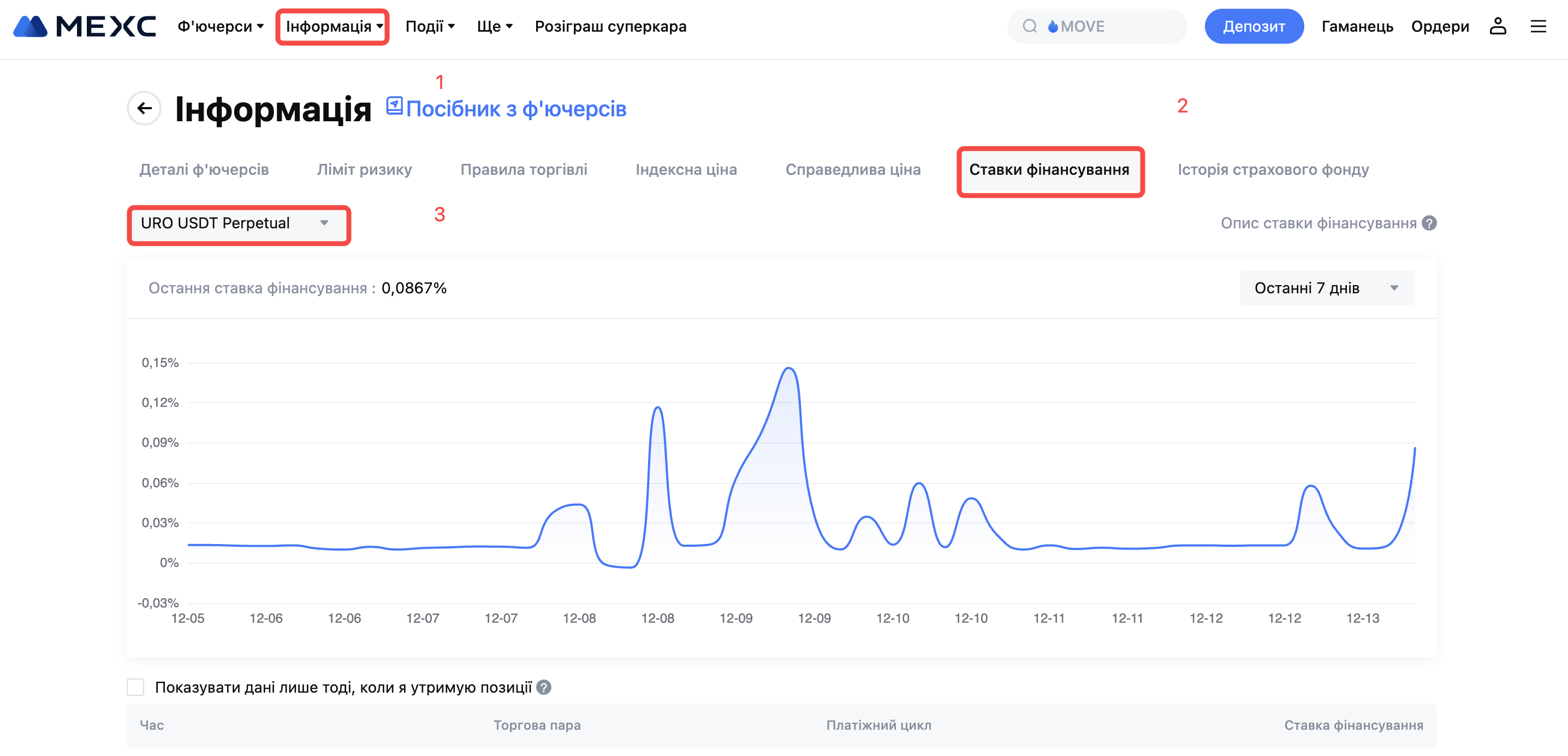 Остання інформація про ставки фінансування наведена у вкладці Інформація - Ставки фінасування