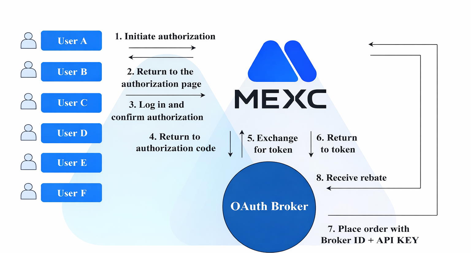 对接MEXC OAuth 2.0的第三方应用,可向MEXC用户提供一键交易功能,具体如下: